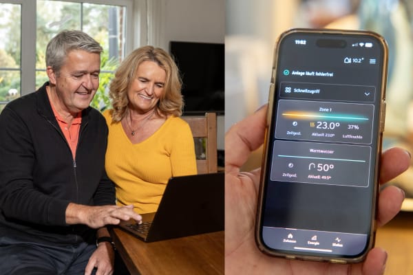 „Eigentlich ist alles wie vorher, nur ein bisschen besser“, sagt Kerstin Voß. Die gleichmäßige Wärme im ganzen Haus, der geräuscharme Betrieb der Anlage und die einfache Steuerung per App überzeugen das Ehepaar. „Früher gab es kalte Ecken im Flur. Jetzt ist überall die gleiche angenehme Temperatur“, berichtet sie. Besonders praktisch findet sie die Steuerung ihrer Energieversorgung via Handy-App. Stromerzeugung, Speicherstand und Wärmepumpenleistung erscheinen auf dem Display. „Morgens checken wir direkt, wie viel Strom wir selbst produziert haben und wie viel fürs E-Auto übrig bleibt.“